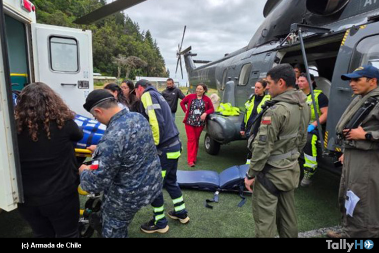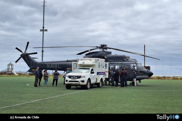 Ante la falta de un avión ambulancia disponible, se solicitó apoyo a la Armada de Chile, para que mediante un helicóptero naval se efectuara el traslado de la paciente.