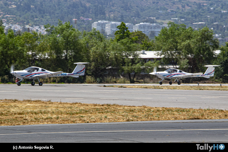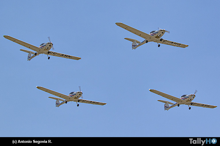 Club Aéreo de Santiago: Beech Aircraft T-34A Mentor CC-KXT; Cessna C-172P Skyhawk II CC-KSZ; Cessna C-182T Skylane (G1000) CC-PNB y CC-PVJ; Cessna R-182RG Skylane II CC-KSR; Diamond DA-20C1 Eclipse CC-AHF; Piper PA-18 95 Super Cub CC-KXF; Piper PA-38 112 Tomahawk II CC-KSO; Piper PA-28 180F Cherokee CC-KXJ y CC-KXL; Piper PA-34 200T Seneca II CC-KXY y Van´s CAS RV-10 CC-DLT (nueva adquisición del club y presentación oficial).