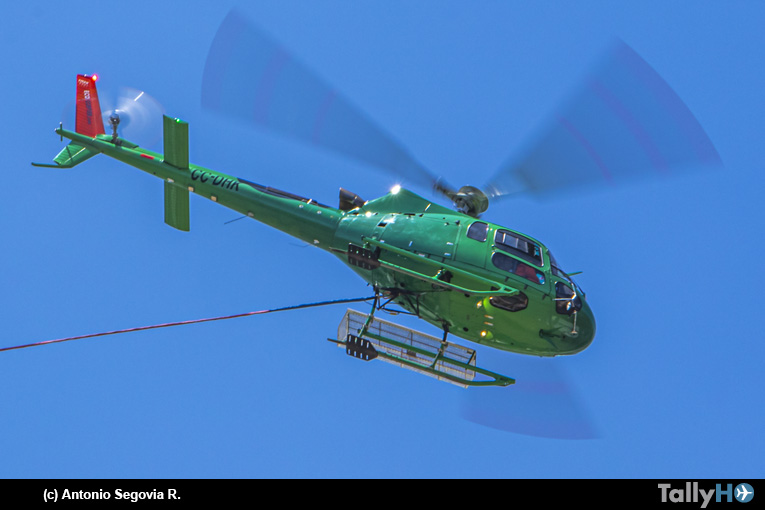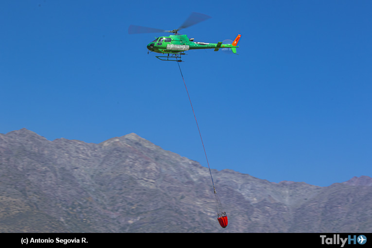 La empresa EcoCopter puso a disposición uno de sus Airbus Helicopters H125 CC-DHK. Helicóptero que realizó una demostración de extinción de incendios forestales. Utilizando su bambi bucket, recargó agua en una de las piscinas que hay en el extremo norte del aeródromo, destinadas justamente para estas emergencias.