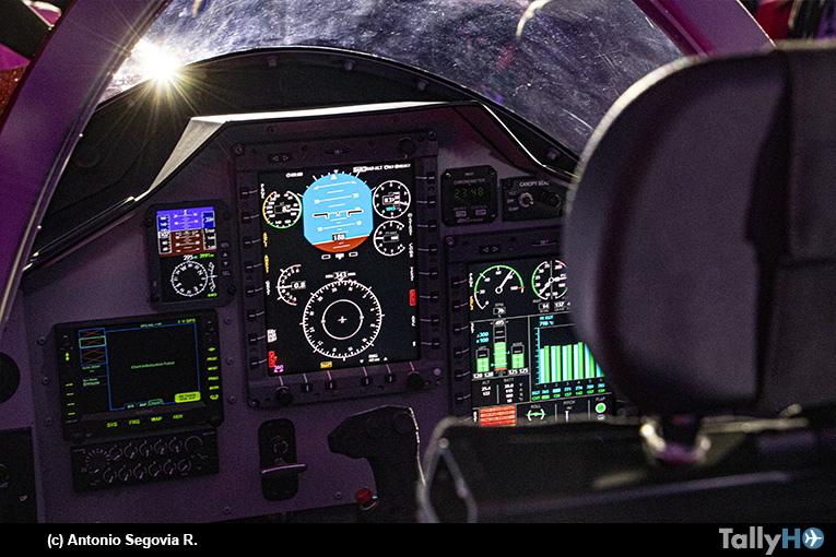 Además, cuenta con la aplicación del concepto de HOTAS, con el fin de que el piloto alumno vaya aprendiendo las funciones principales con los mandos con HOTAS incorporado.