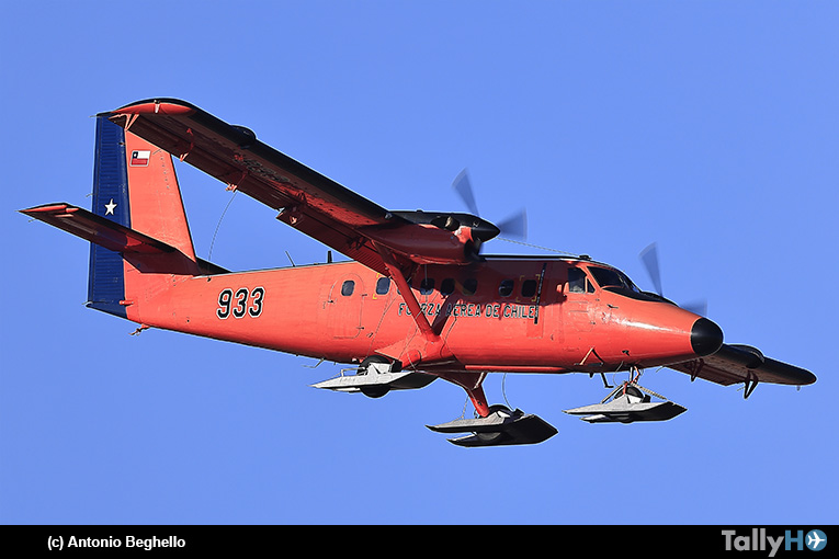 Poco más tarde arribó un DHC-6-300 con su vistoso esquema antártico que opera en la zona austral de Punta Arenas y perteneciente al Grupo N°6 de la FACH con sus tradicionales esquíes.