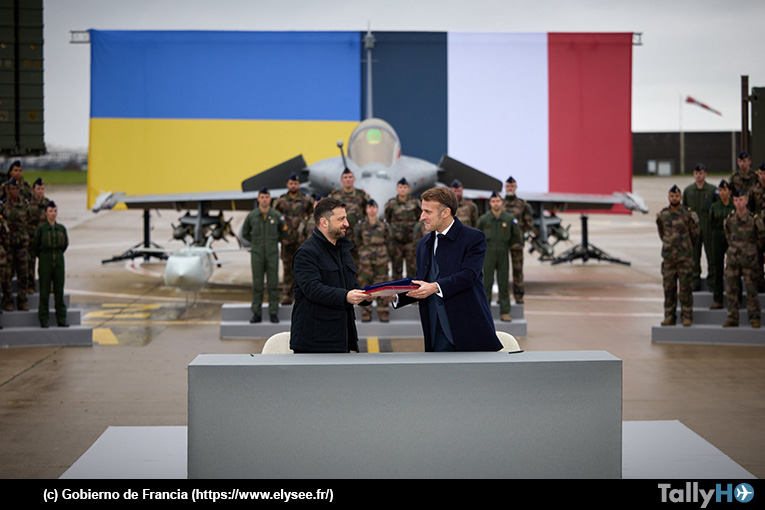 El 17 de noviembre con la presencia del presidente de Francia, Emmanuel Macron y el presidente de Ucrania Volodymyr Zelenskyy, El Jefe de Estado recibió al Presidente ucraniano en la Base Aérea 107 de Villacoublay.se firmó el acuerdo por la compra de 100 aviones Dassault Rafale F4, para el 2035, de producción francesa, junto con armamento guiado, radares, sistemas de defensa aérea SAMP/T NG. En el acuerdo de cooperación se espera que las industrias defensa de ambos países comiencen a trabajar en conjunto, incluida la coproducción de drones interceptores y el desarrollo de tecnologías y componentes críticos para su integración en drones ucranianos.